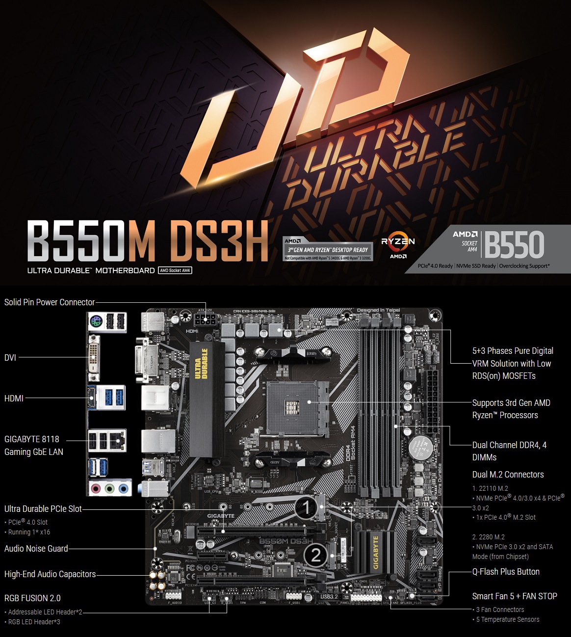 2. Motherboard Gigabyte B760M DS3H Gaming or Gigabyte B550M DS3H Gaming Gigabyte B760M DS3H Gaming or Gigabyte B550M DS3H Gaming